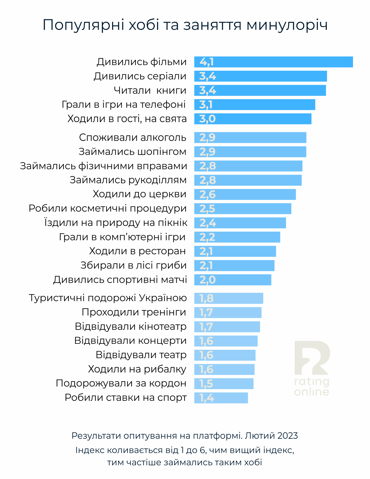 Слід відзначити, що українці останніми роками стали схильні до самообмежень, і більше половини наших співгромадян вважає, що потрібно суттєво себе лімітувати у розвагах і покупках. Але ж рибалка і рукоділля, шопінг і зустрічі з друзями, спорт, смачна їжа і книги як і раніше приносять радість. Життя бентежне, але наші співвітчизники вміють знаходити навіть в темні часи світлі хвилини.